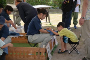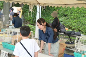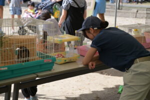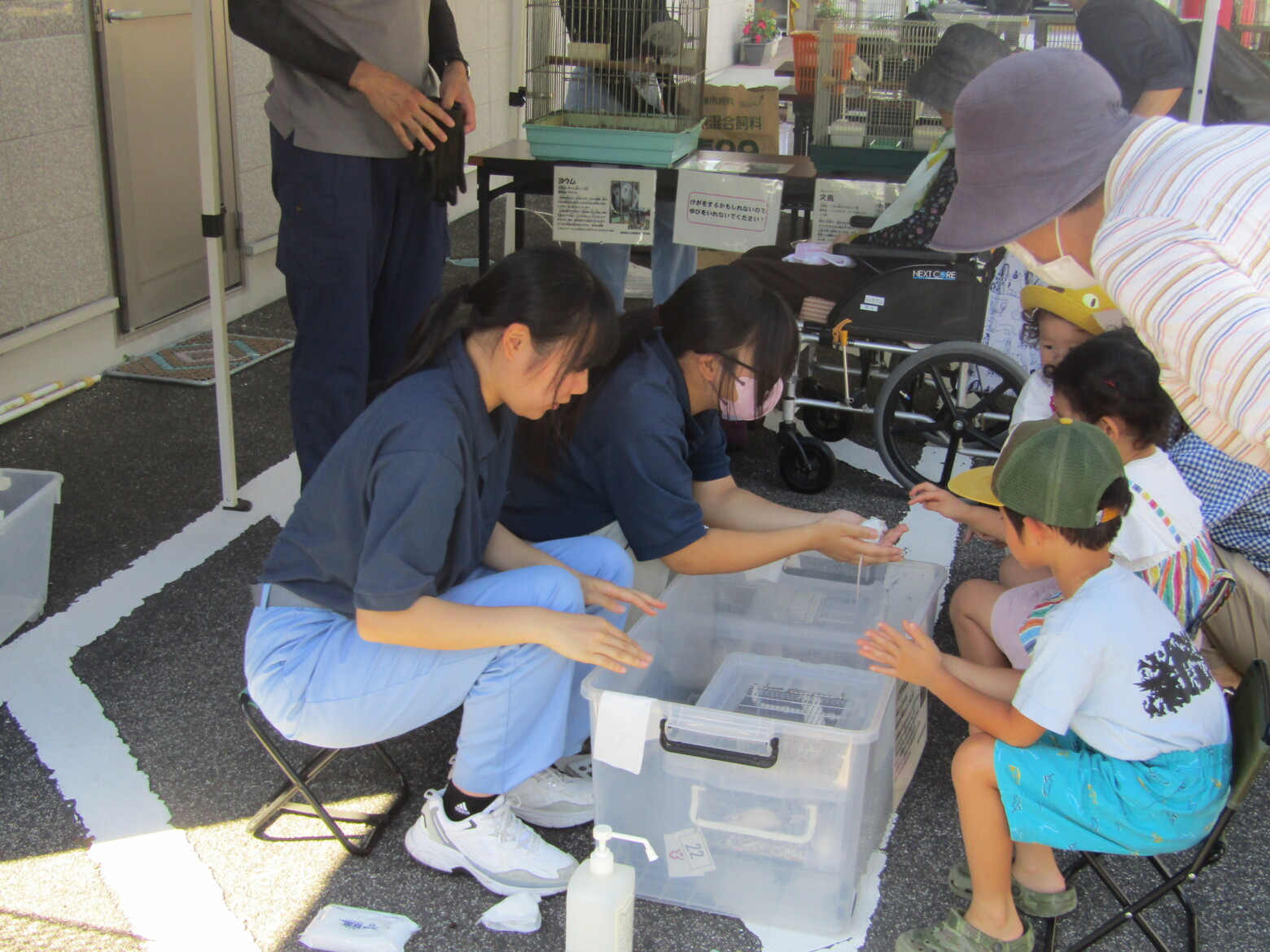 動物科学科の社会動物コースでは、動物の適正飼養・終生飼養の普及を目的とした移動動物園を行っています。