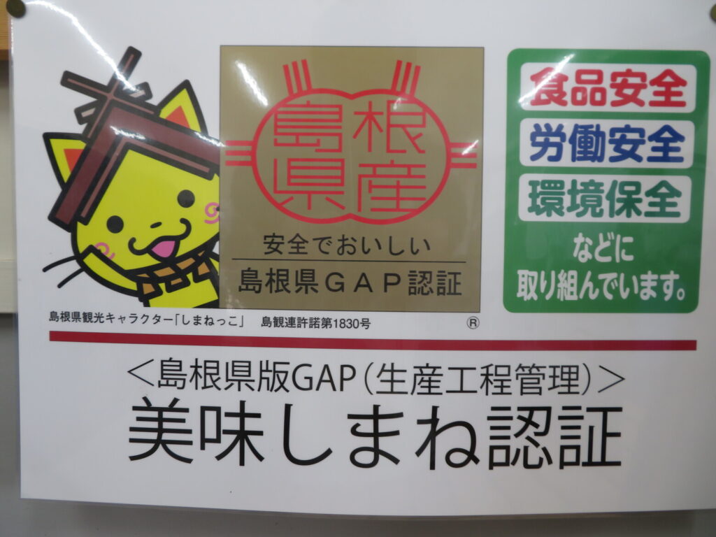 美味しまね認証とは・・・産品が県の定めたGAP(生産工程管理基準)に基づき生産されていることを認証する県のGAP認証制度のことです。