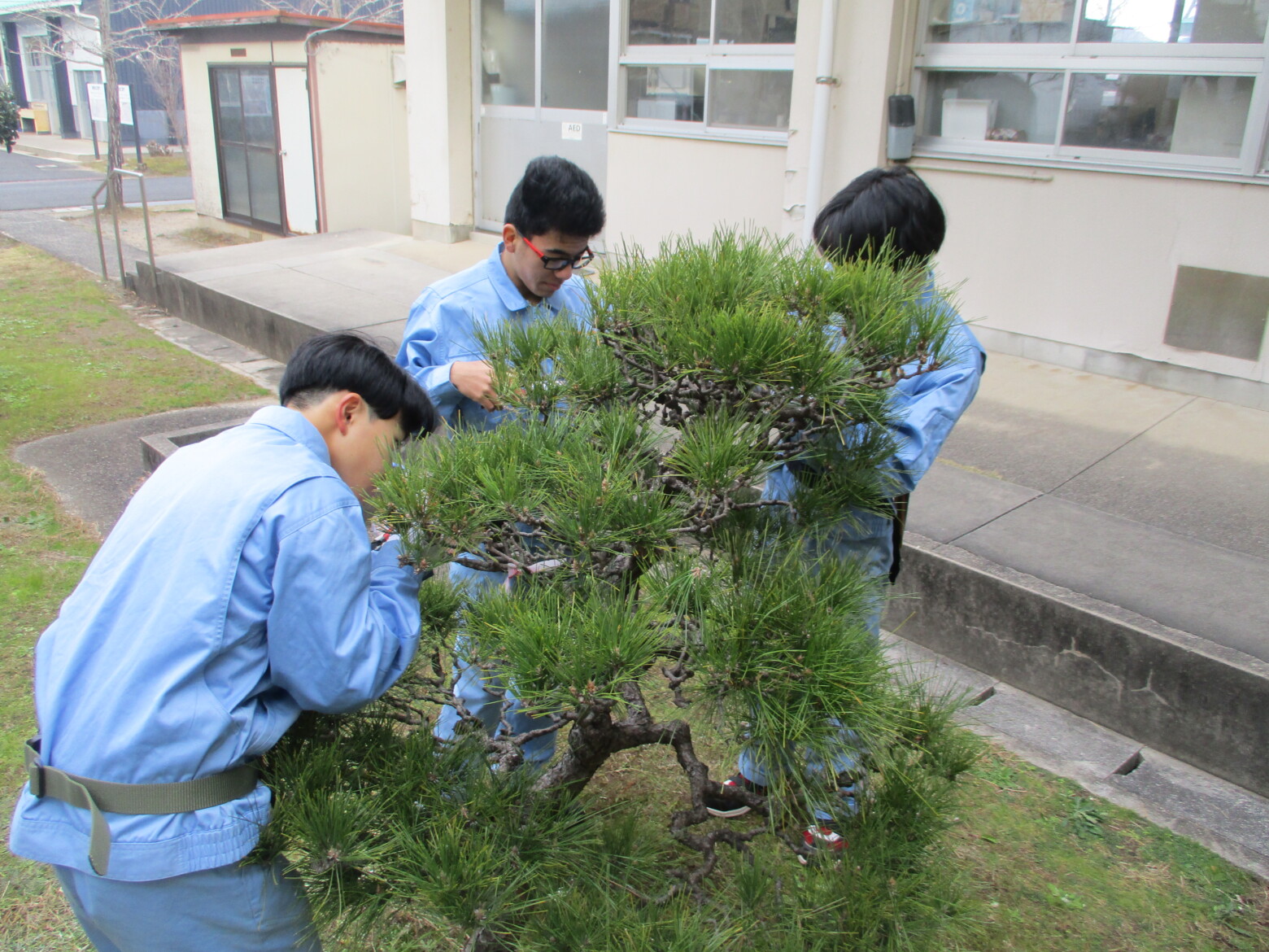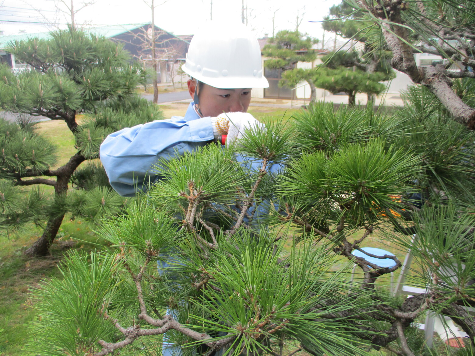 【環境科学科】マツの古葉をもみあげしました2025/12/15(月) 環境科学科の造園・森林コースを選択する生徒がマツの古葉を摘み取る作業(もみあげ)を行いました。 2年生から造園・森林コース、土木・設計コースに分かれ、専門的な学習や実習の中で様々な知識や技術を身に付けていきます。 また、造園・森林コースを専攻する2年生は現在、造園技能士の試験に向けた練習も行っています。全員合格を目指して取り組んでいきます。 以下は実習の様子です。 実習の様子① 実習の様子②