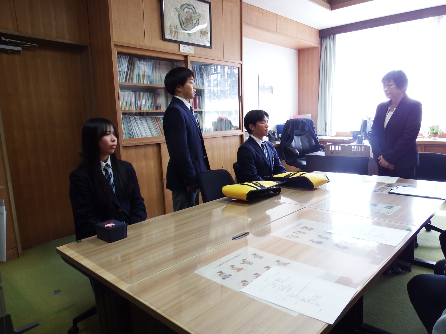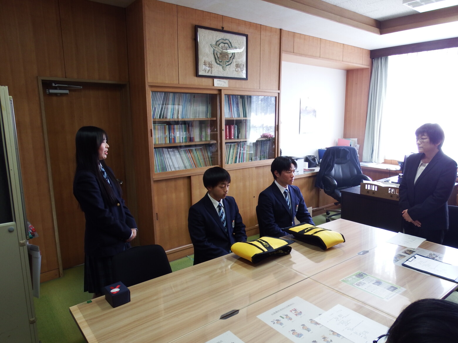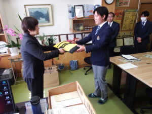 本日、本校のPTA会則に則り、会長の加田様に来校いただき、校長室において記念品の贈呈式を行いました。