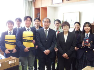 贈呈式では、加田会長様よりお祝いの言葉と記念品の贈呈を受けた後、カヌー部代表の宮原さんと農業クラブの桑原さんがそれぞれお礼を述べ、今後の決意と進学先での頑張りを誓ってくれました。