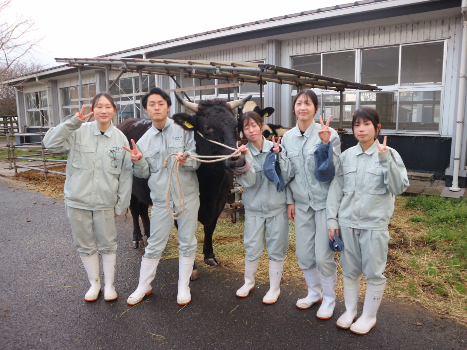 本校では第1回大会から連続出場を続けており、今大会には動物科学科3年肥育班の5名が愛情を注いで育て上げた「真弥柊(まやと)」を出品しました。惜しくも入賞は逃したものの、最高評価である「A5ランク」を獲得することができました。