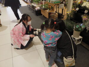 また、2月14日・15日には、イオンモール出雲店にて「真弥柊」の販売実習を実施しました。