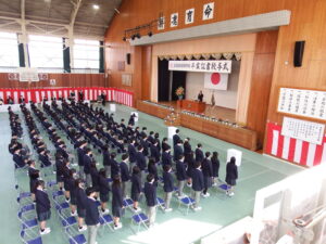 令和7年度「卒業証書授与式」を挙行しました3月1日。昨日までの雨が嘘のような好天に恵まれる中、第73回目の卒業証書授与式を挙行いたしました。 ご来賓の方々をはじめ、地域の皆さんからたくさんの励ましやお祝いのことばをいただきながら、4科総勢154名の生徒が本校を巣立ちました。 卒業生の皆さんの、今後ますますの活躍を祈念しています。