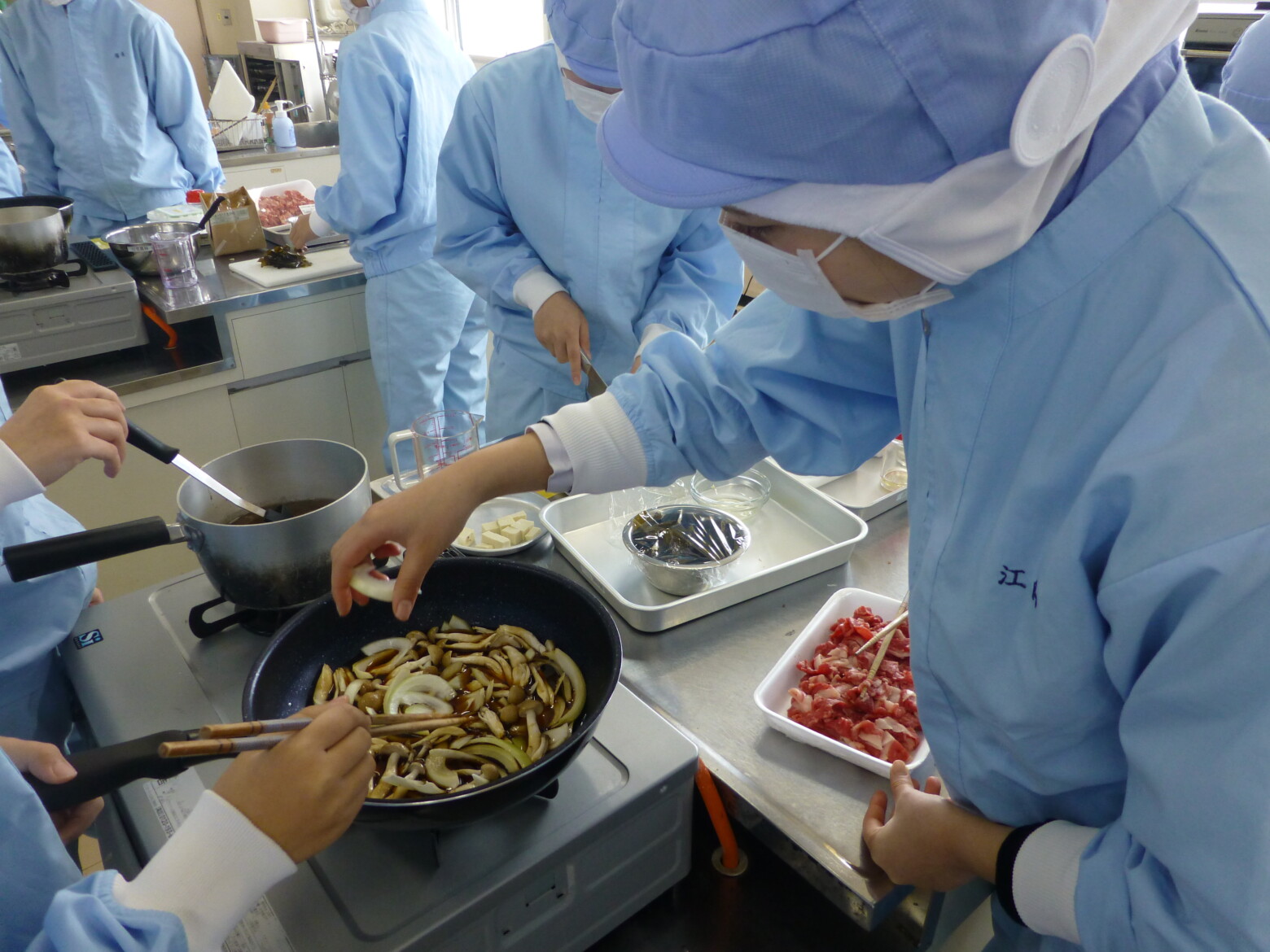 1年生、各クラスで毎年恒例の「しまね和牛丼」をつくりました。