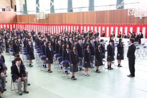 令和8年度がスタートしました。4月8日(水)、1学期の始業式を行いました。 今年度は新たに21名の先生方を迎え、令和8年度が始まりました。 また、翌日の9日(木)には入学式を執り行いました。 原 隆志校長先生より 157名 の入学が許可され、新入生代表が誓いのことばを述べました。 新入生の皆さん、入学おめでとうございます。 これから共に頑張って行きましょう!