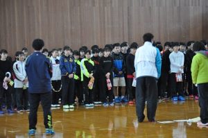 【バドミントン部】出雲地区大会を開催しました2月11日に本校で出雲地区大会を開催しました。この大会は、本校バドミントン部顧問が主催する大会です。 今回は、出雲農林高校、出雲高校、出雲商業高校の3校、合計約80名の生徒が参加しました。試合は、男子Aリーグ4チーム、Bリーグ5チーム、女子Aリーグ4チーム、Bリーグ3チームで団体戦が行われました。 お昼には、豚汁も振る舞われ和気藹々と交流をしました。 オフシーズンに良い刺激になる大会でした。 大会風景1 大会風景2 大会風景3 大会風景(閉会式)