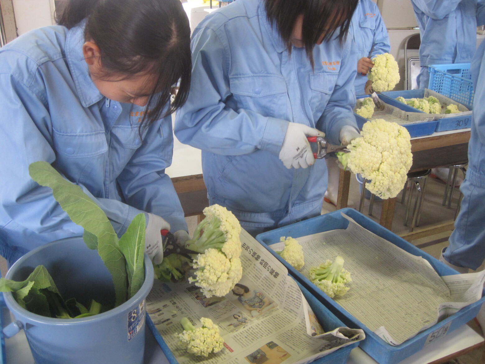 【植物科学科】イタリア野菜の収穫イタリア野菜の「カリフローレ」の収穫を行いました。 1玉なんと2.5kg越えのカリフローレも収穫でき生徒は大興奮でした! 袋詰めは白と赤のクリスマスカラーを意識しました。