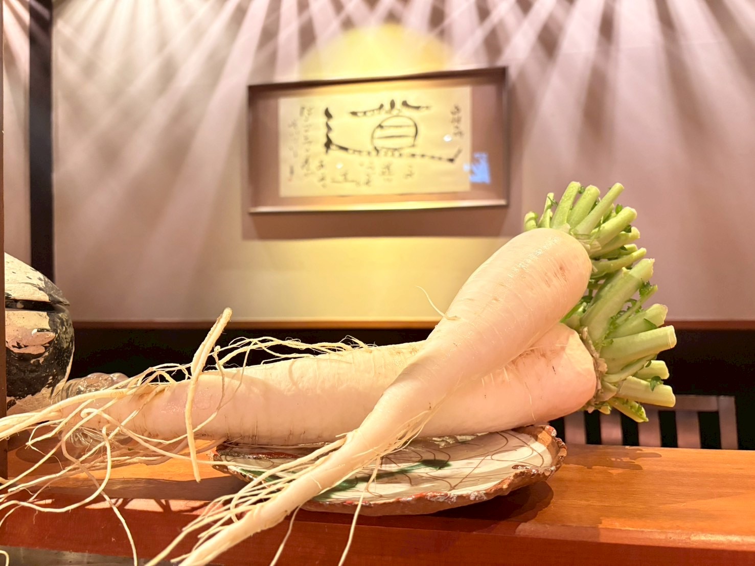 一慶さんは、出雲おろち大根を薬味として使用しておられることから、このご縁をいただきました。早速、収穫をして送ったところ、「とても立派なお野菜で感動しました!」と言っていただき、実際にお客様に提供してくださるそうです。