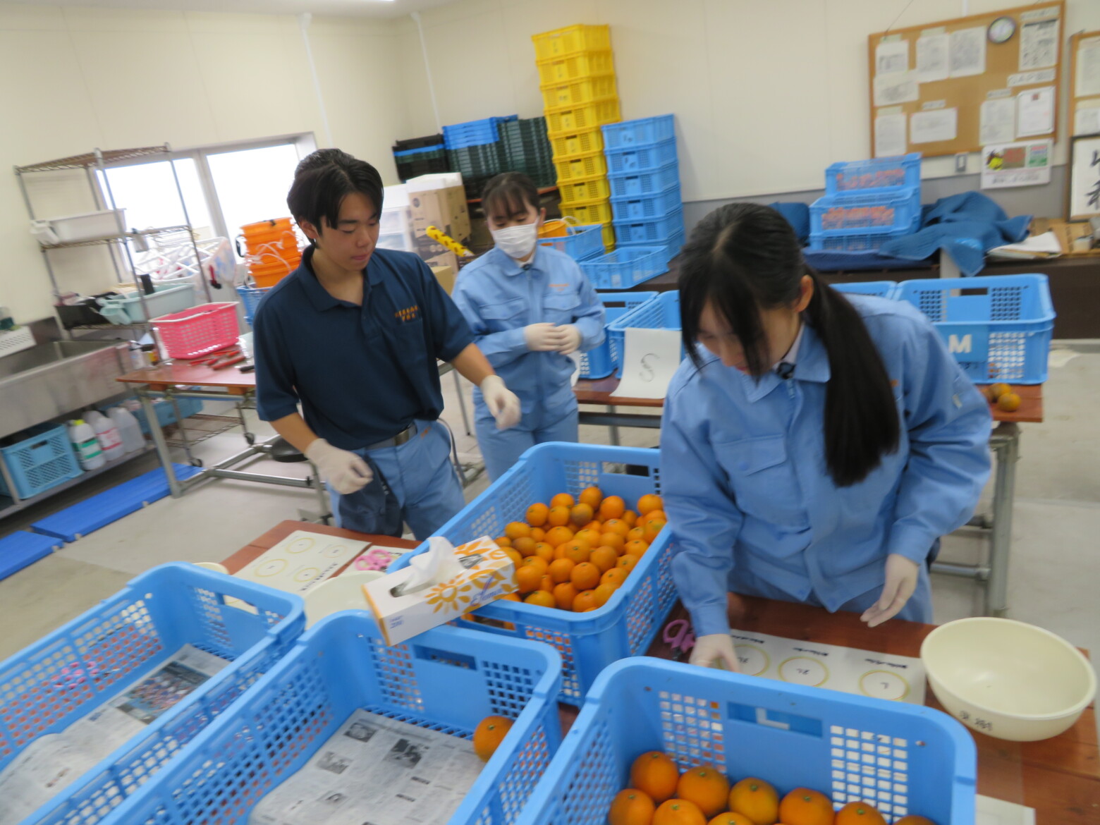先日、本校で栽培している みかんとゆずを販売しました。調整をおこない、サイズごとに大きさを合わせました。
