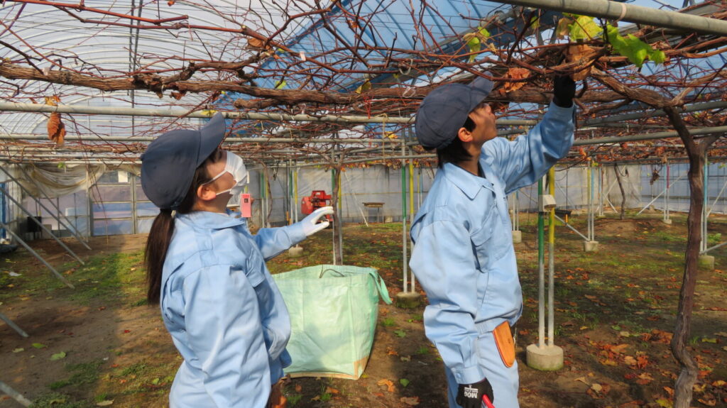 【植物科学科】果樹 ぶどうの整枝剪定をしました