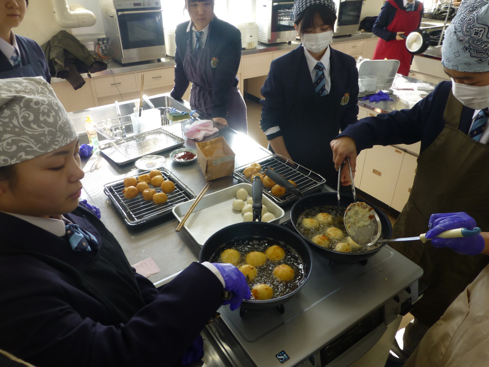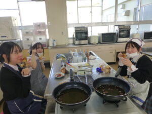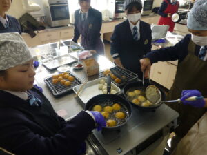 【家庭クラブ】第2回料理講習会を開催しました家庭クラブ役員の3年生を中心に調理講習会「チーズボール」を開催しました。 1年生から3年生まで楽しく交流しながら、作ったチーズボールはもちもち触感でとてもおいしかったです。