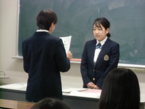 面接試験が終わり、取締役(生徒)で選考・所属先を決定し、翌日の入社式で社長に入社を許可され、新入社員代表による宣誓が行われました。新入社員のみなさんの、益々のご活躍をお祈りするとともに、これからも出農モーリンベーカリーは、よりおいしいパンの探究・提供に心掛けます!!