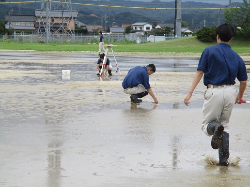 【環境科学科】平板測量競技 校内大会7月14日に平板測量競技校内大会を実施しました。 参加者は、環境科学科の2年生で3人1組を基本とした8チームで競いました。 1年生の時から学習している平板測量の実力を発揮するべくチーム一丸となって競技に臨んでいました。 本大会の上位2チームは7月28日に開催される平板測量競技県大会へ出場します。