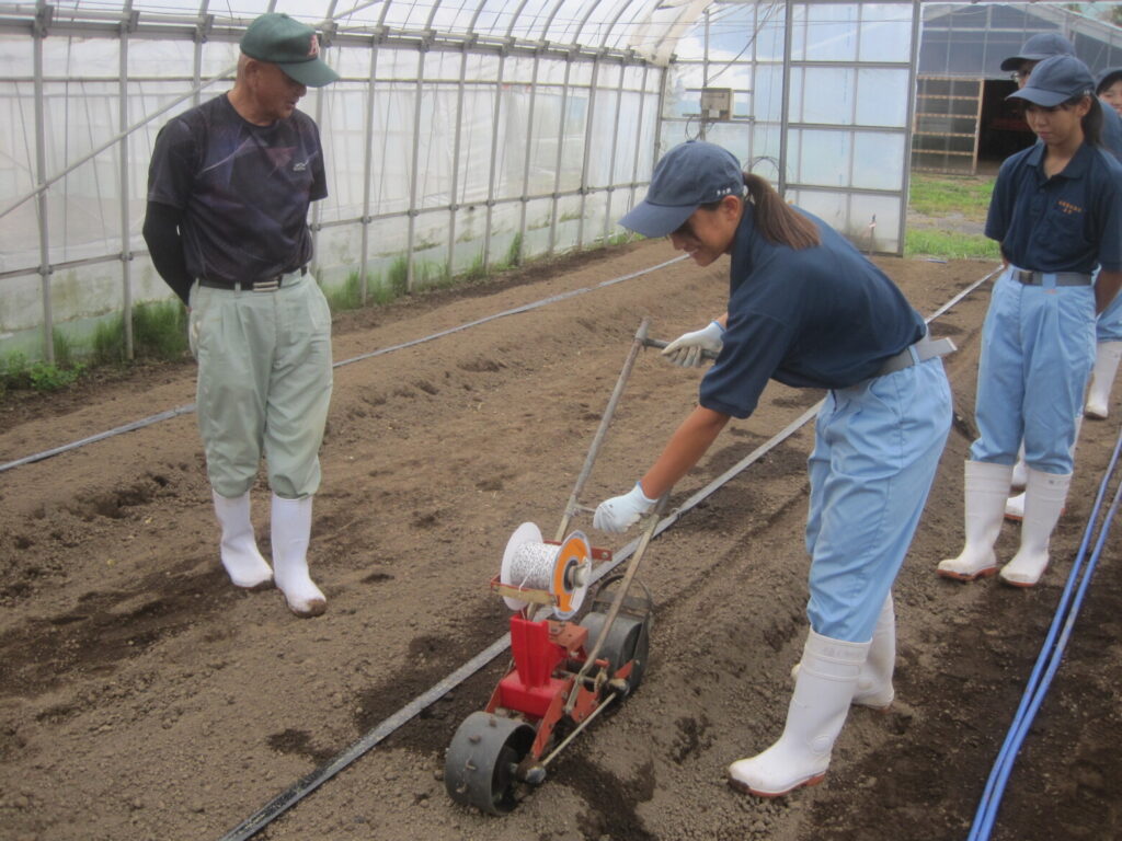 【植物科学科】タマネギの種まき実習をしました2年生の野菜専攻生でタマネギの種まき実習をしました。 「播種機」を使って種まきをしました。初めての操作でしたが呑み込みが早く、スムーズに種まきができました。 その後の発芽もよく、順調に育っています。