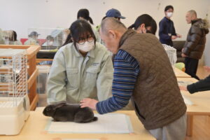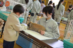 今回は小学校と障がい者福祉施設の2か所で活動を行いました。生徒たちも積極的にコミュニケーションをとりながら、時には授業で学習した動物の生態や習性等を伝えることができ、貴重な時間と経験になりました。当日の会場は会話だけでなく笑顔も溢れている、とても和やかな雰囲気であり、動物が持つ癒しや笑顔などを届けることができる凄い力を再認識させられました。