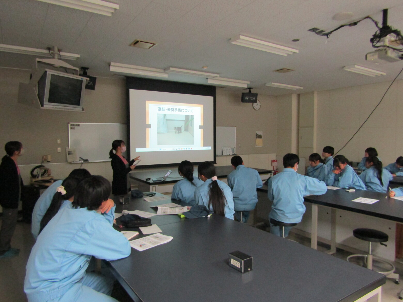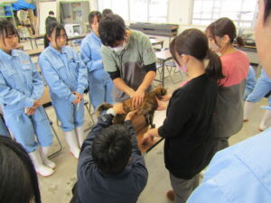 1月23日(金)に動物科学科2年生社会動物コースの生徒を対象に、あるぱ動物病院から院長先生と看護師さんをお招きし、動物衛生講習会を開催しました。