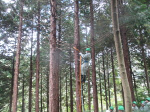 10月19日に飯南町へ出かけ、管理しておられる森の中で倒木体験や、チェーンソーを実際に扱う体験をさせていただきました。
