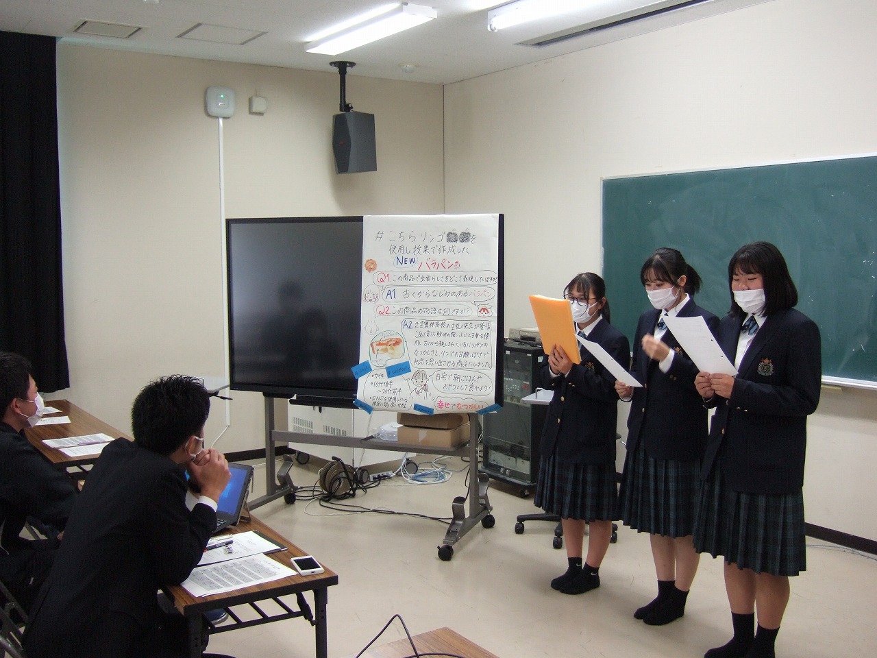 【食品科学科】6次産業化学習 PartⅠ 農業経営の授業で6次産業化について学んでいます。 台風により落果したリンゴの有効利用を某農業高校から依頼があったと仮定して、商品化についてのプレゼンをおこないました。生徒達はクライアントからの「出雲らしさを表現した商品」の要望に応えようと、様々な方法で出雲らしさを表現していました。 次回は、商品の試作をおこなう予定です。