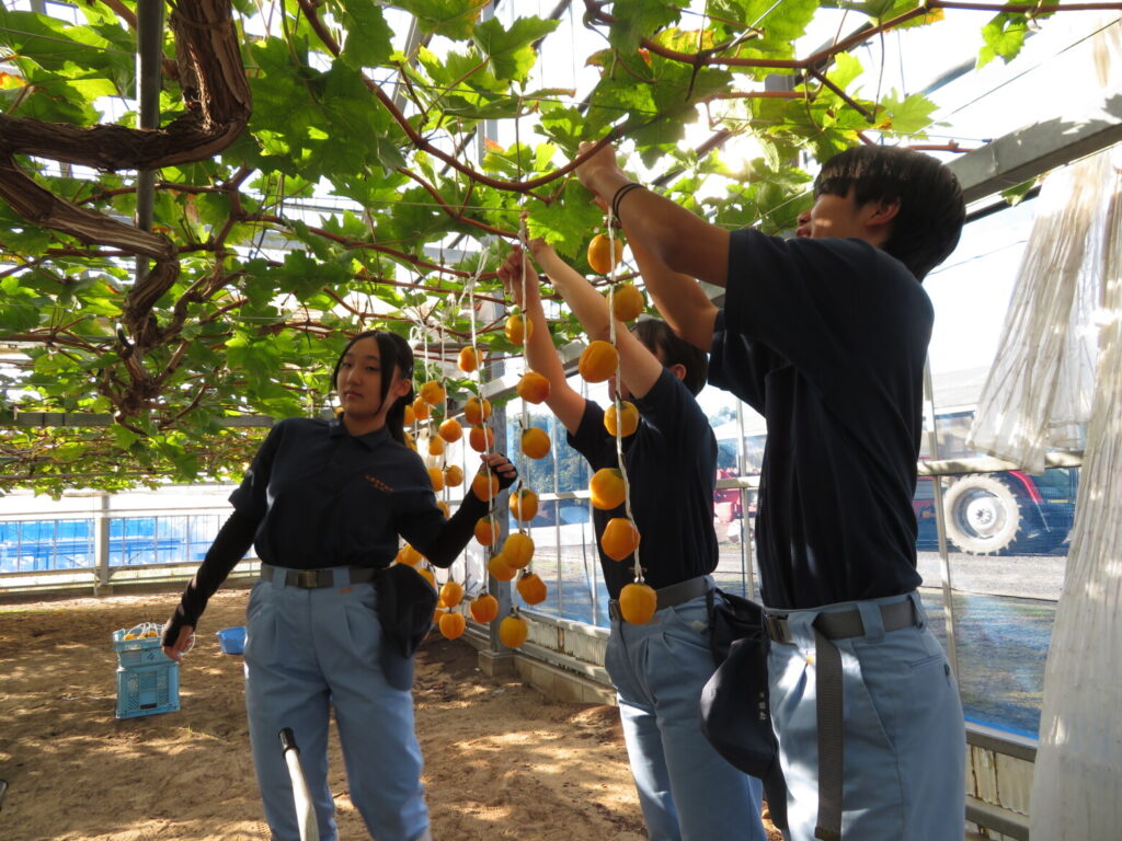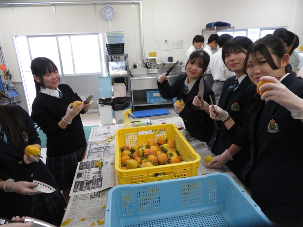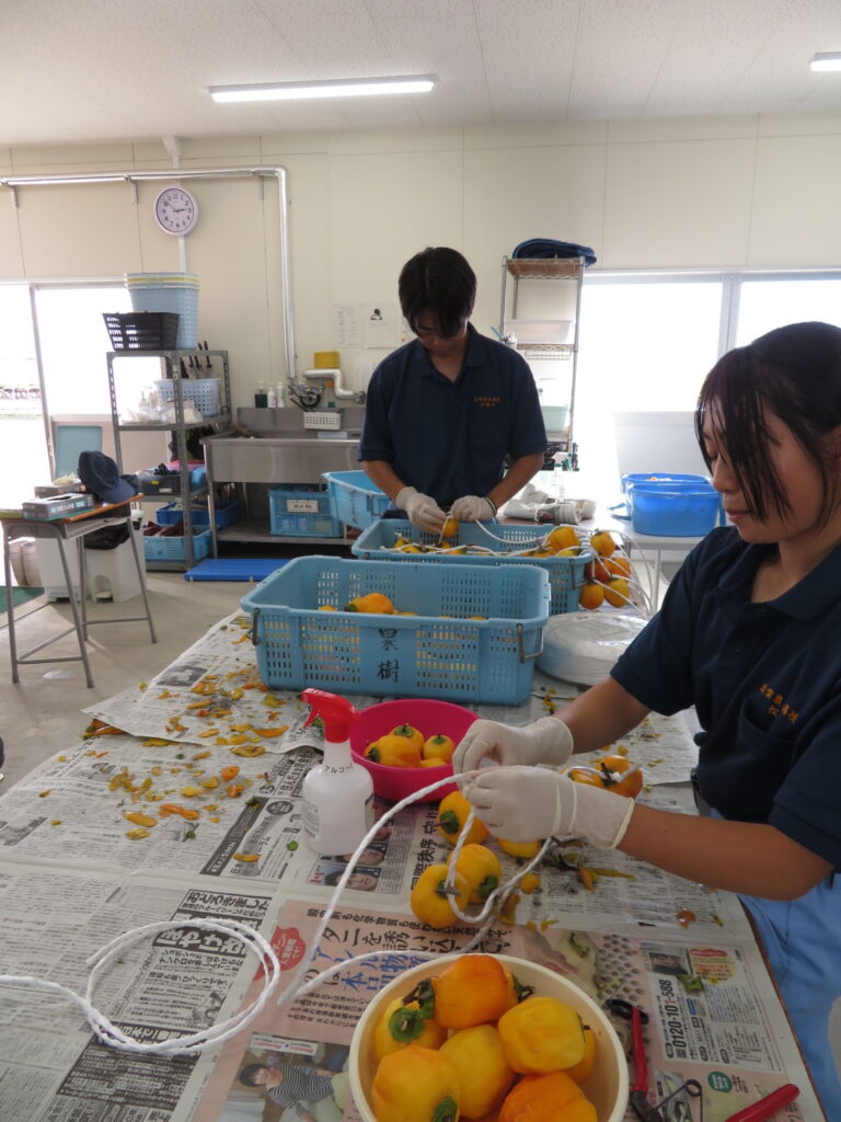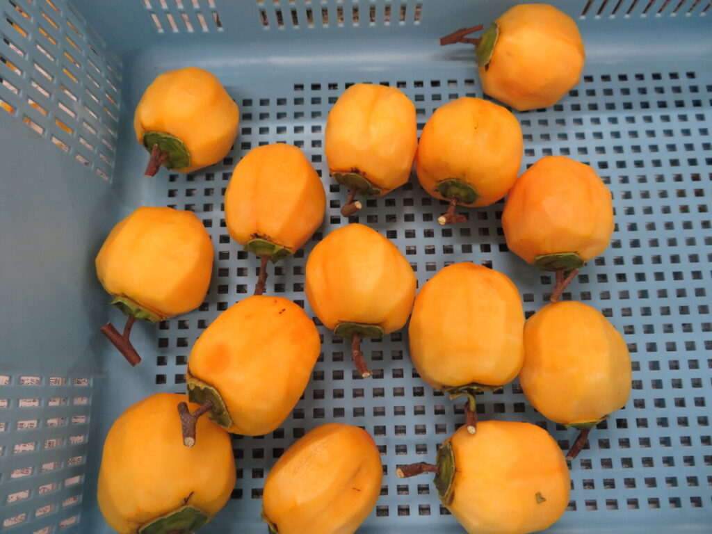 果樹の授業・実習で干し柿作りをおこないました。生徒たちは包丁を上手に使いながら皮をむくことができました。