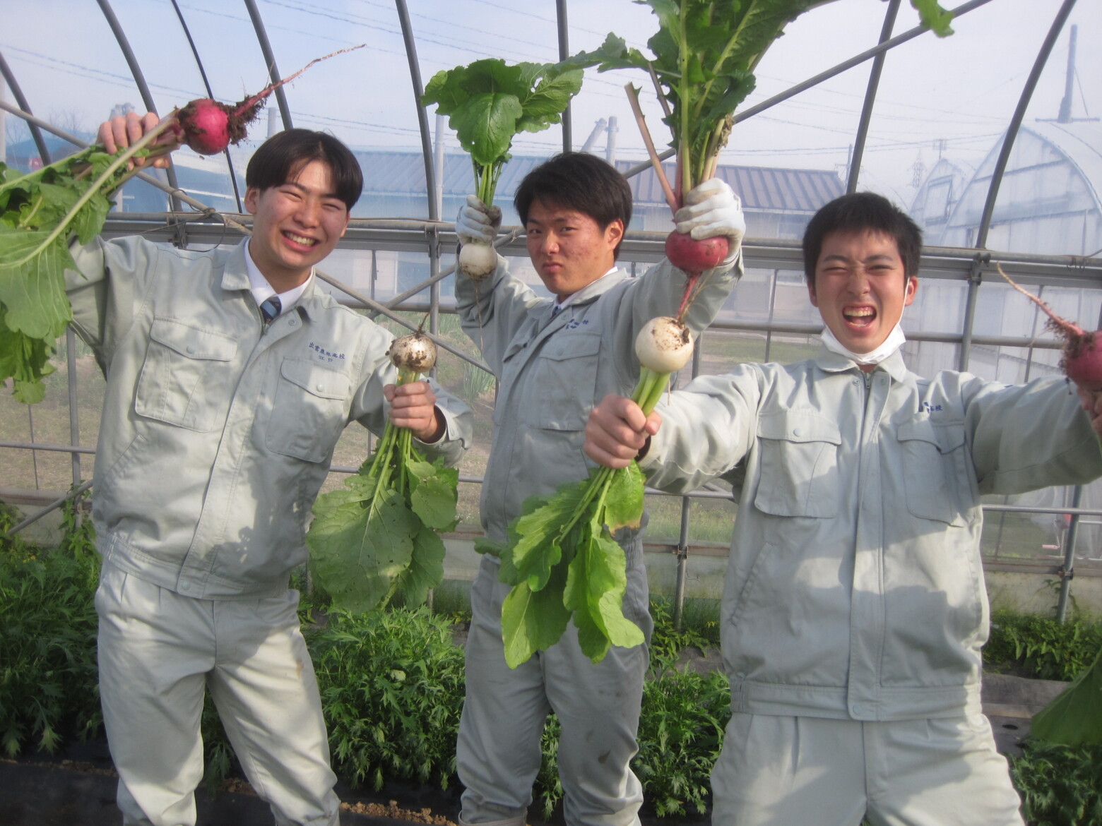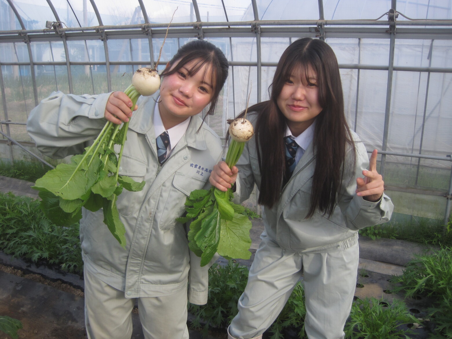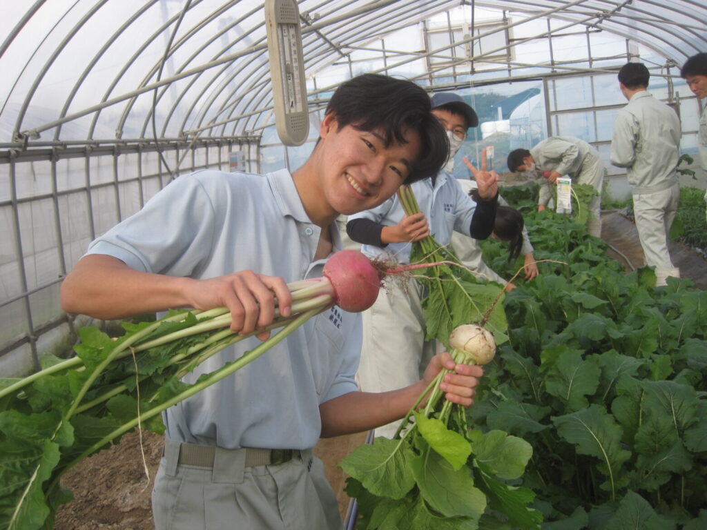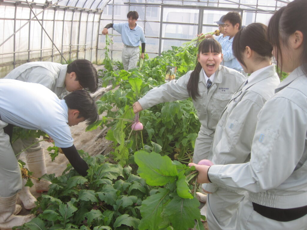 食料生産コースの生徒で栽培したカブを収穫しました。